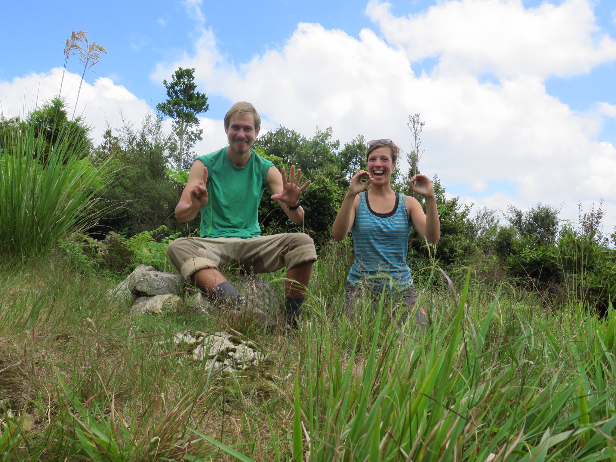 As a little extra we passed the halfway mark on the Burrtons’s track, we almost couldn’t believe it. There we stood, halfway between the Cape and he Bluff! The next day we had our first glimp of he South Island from Archey’s lookout, can’t wait to get there.