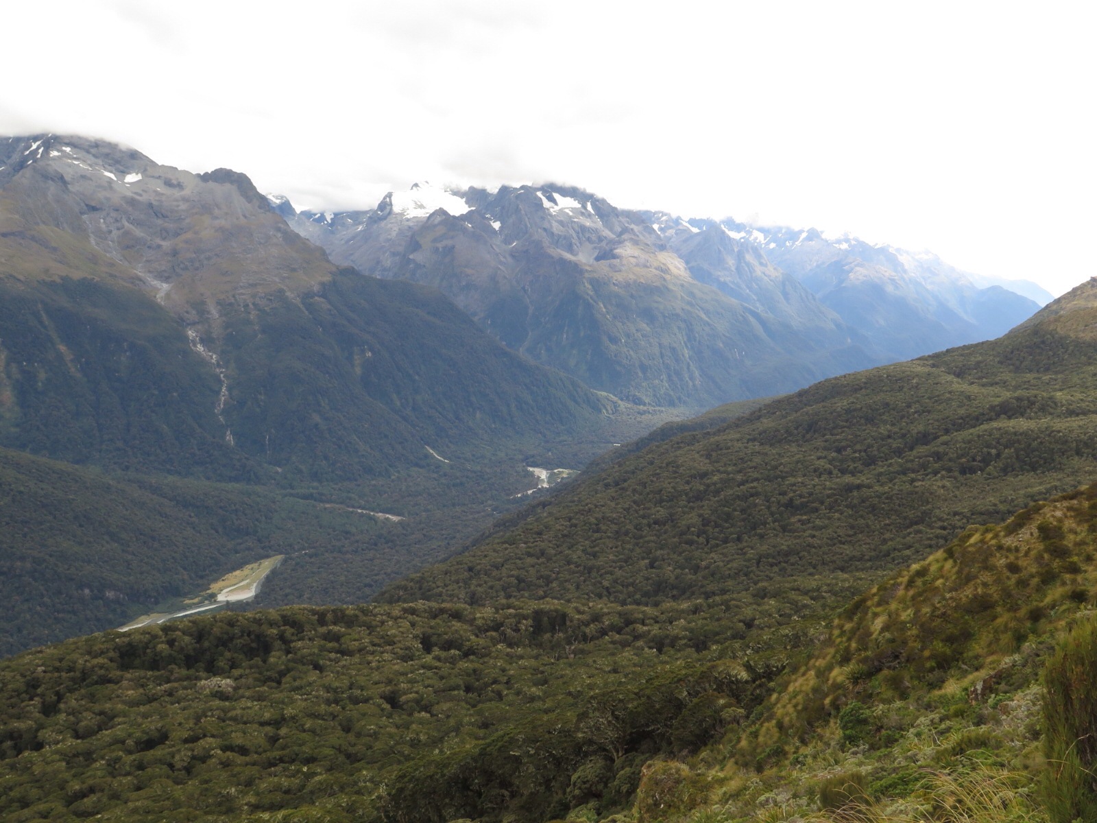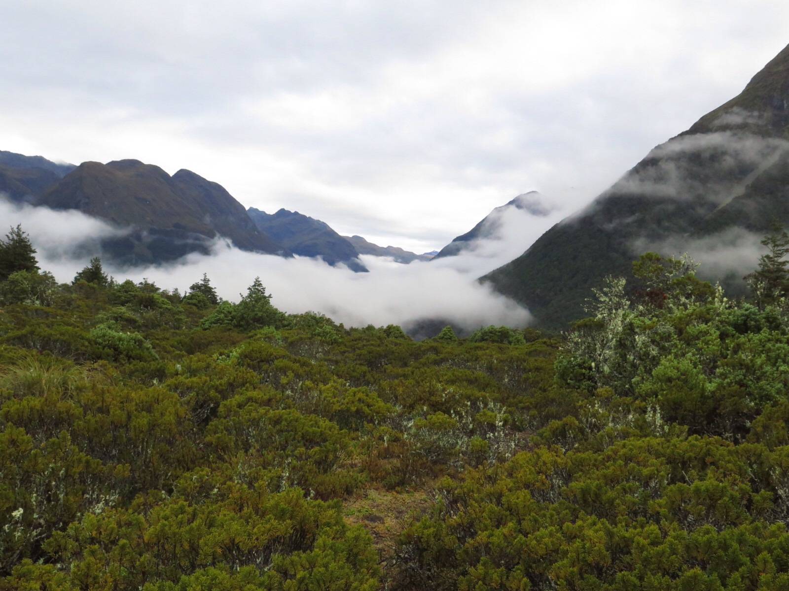 The day was harder than we expected but every effort worth it. The grandeur of these walks is just that little more from what we usually get on Te Araroa. Once out of the mighty forest we entered an exact copy of the Norwegian mountains, before reaching Harris Saddle and an afternoon of wide panoramas over the green Hollyford valley and the Fiordland and Aspiring peaks. It was gorgeous. We made a small side trip up to Conical Peak to see it all a little better.