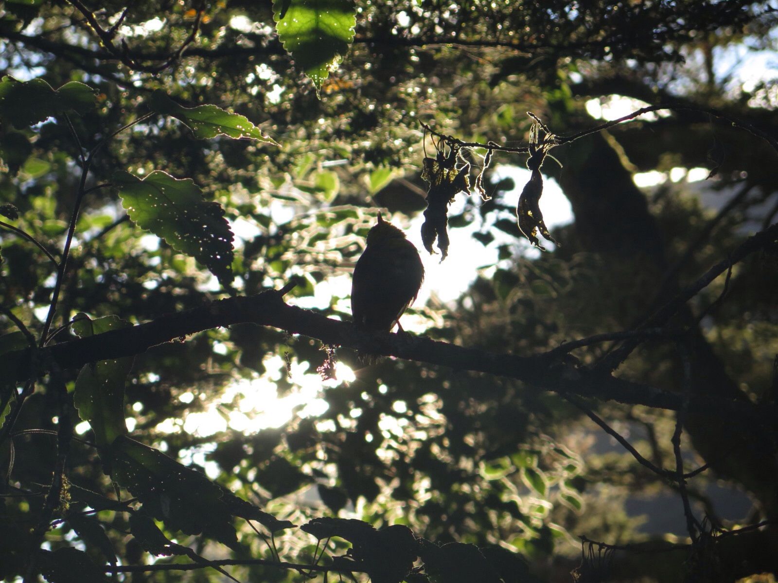 A beautiful morning followed that provided good motivation to get out of our sleeping bags. We got ready for a big day, 34km all across Routeburn and into the Greenstone track to McKellar hut. Before leaving the hut warden pointed out a group of yellowheads, a rare and endangered native bird, hanging out in a tree nearby. We stood for a long time looking at them hopping on the trees, foraging for insects.