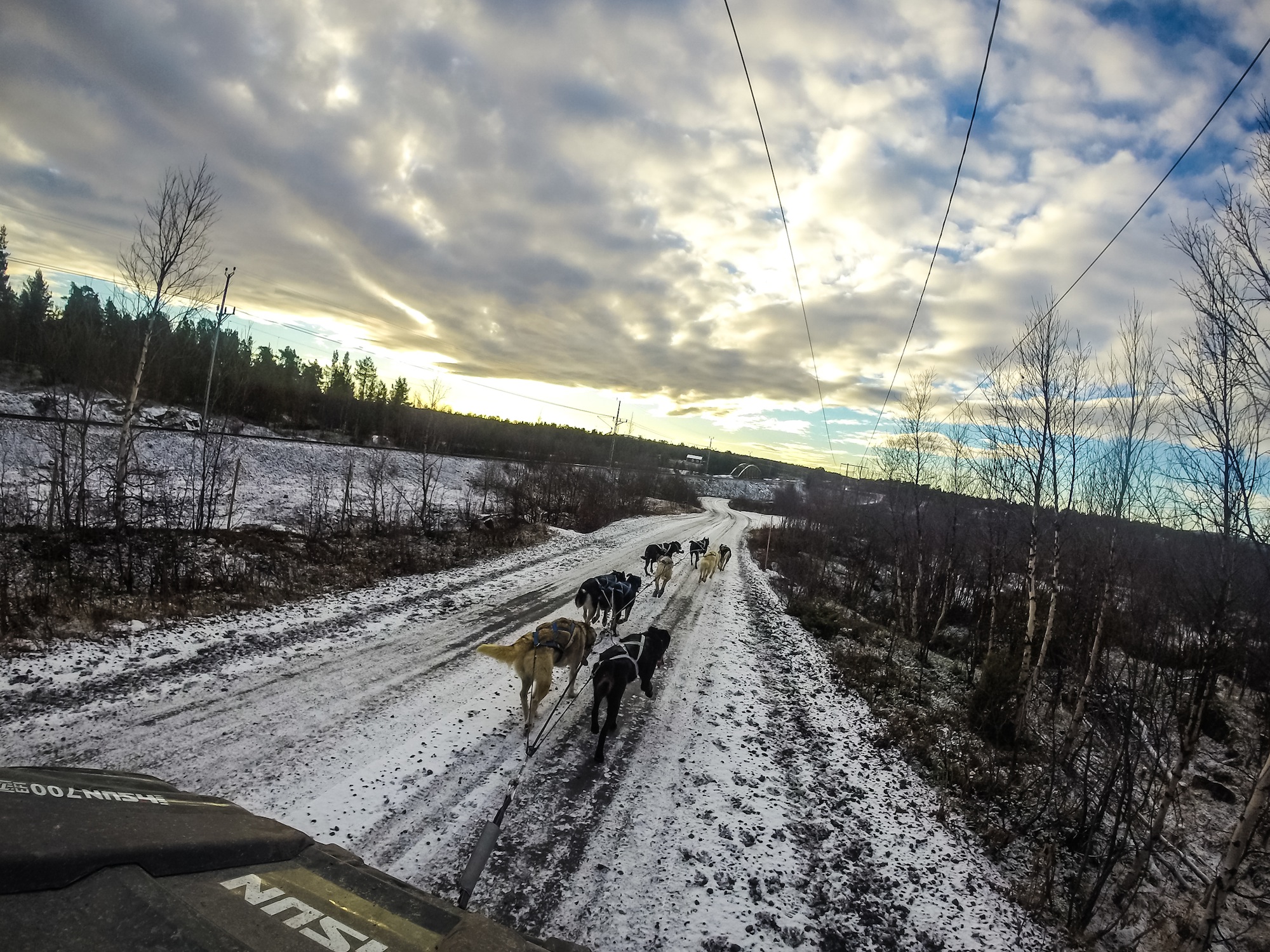 Slowly but steady autumn is changing to winter and the training season is coming to a close. The days are getting progressively darker, every day, and the headlights come out earlier and stay on longer both mornings and evenings. The sky is getting its seasonal painted look: an explosion of streaks of color. The light we still get is pale yellow, golden and red, illuminating the tops of the trees and the other side of the river as the day breaks. I love this period, in its own way, because of beauty of the light, of the impossible skies, of the eternal sunsets. Soon, only the shimmer will remain, when Kiruna is veiled into darkness for 6 consecutive sunless weeks.