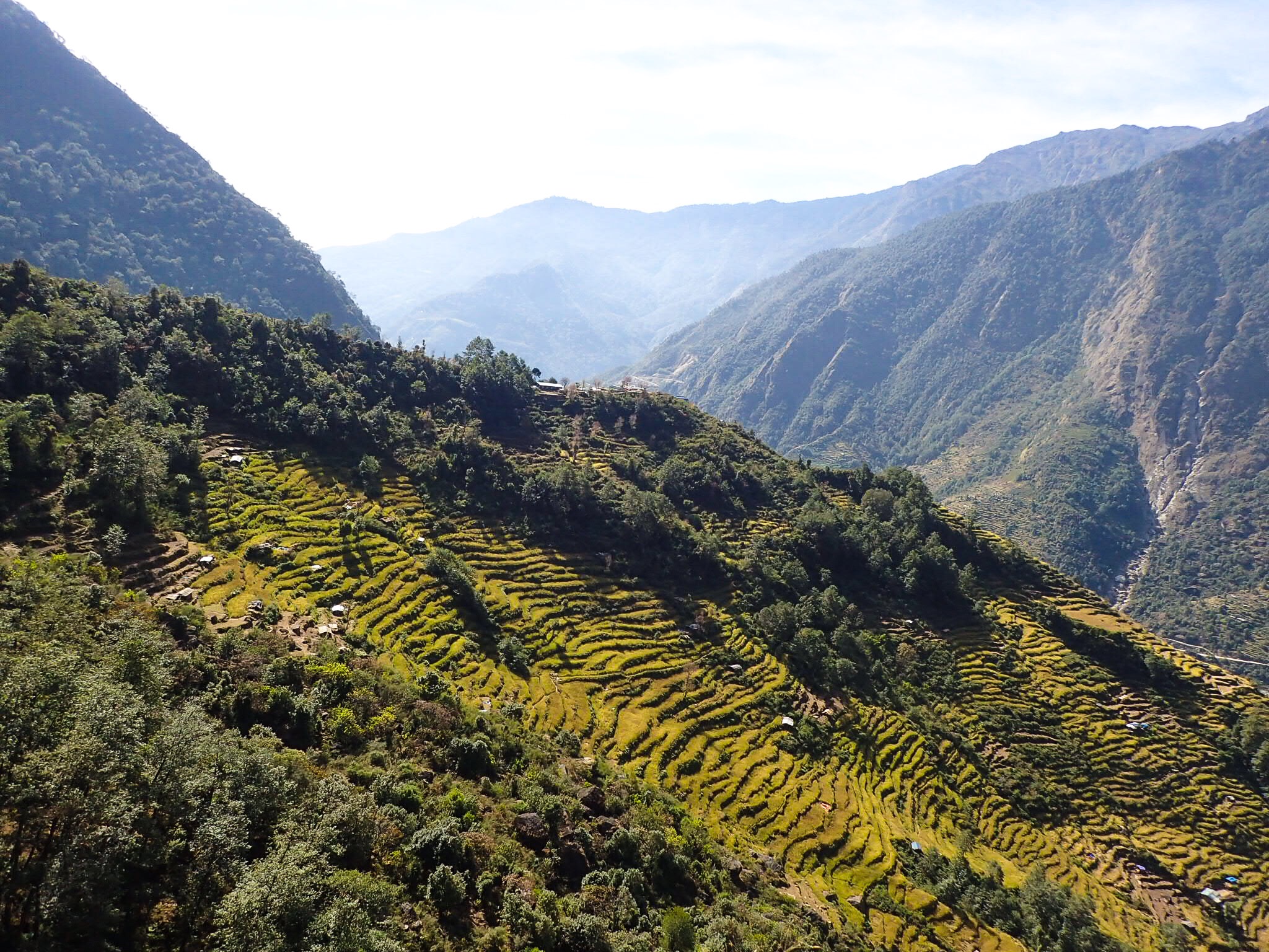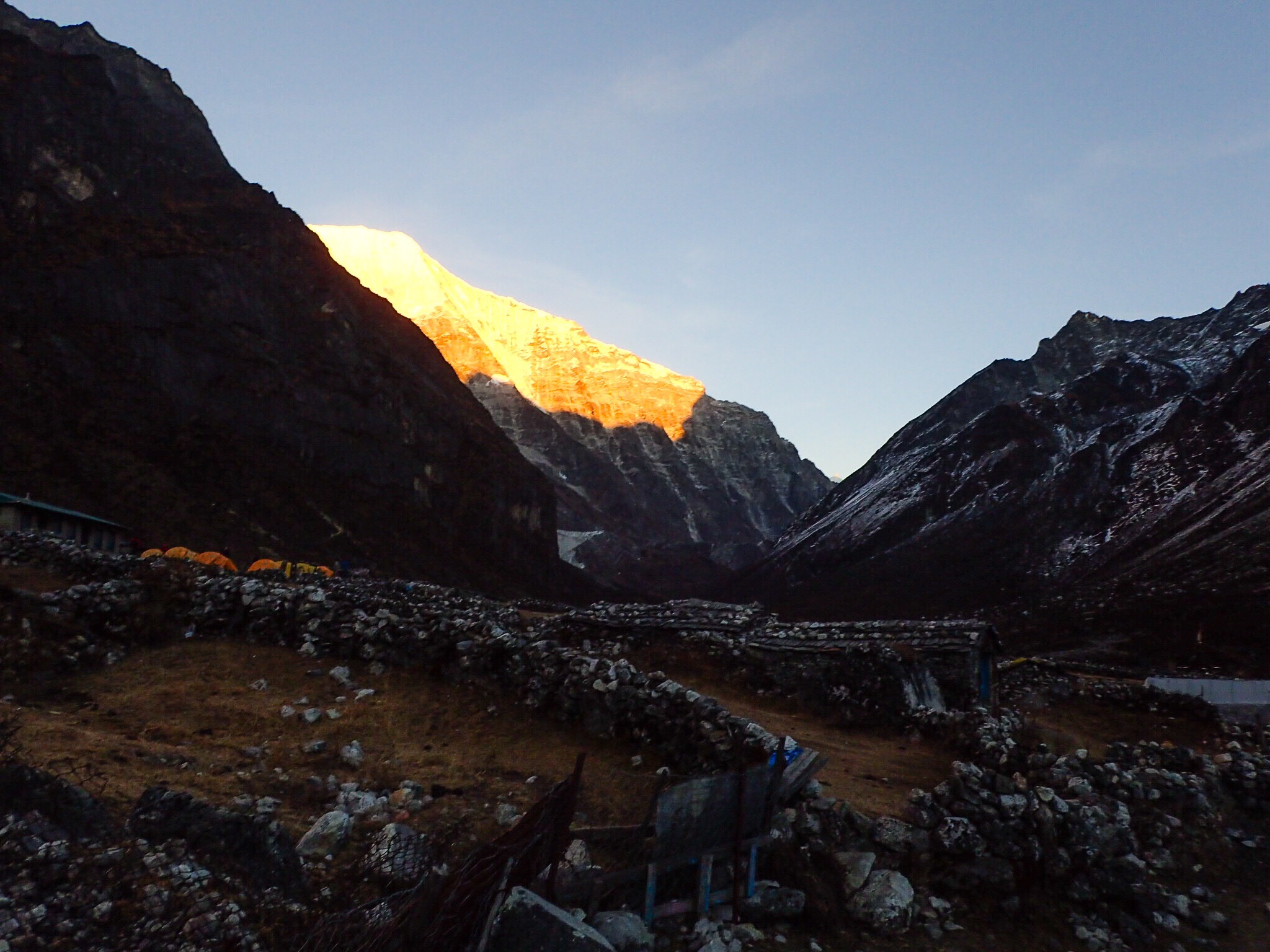 It is said that the Rolwaling is a mirror of the Khumbu 40 years ago, before the people there abandoned most of their traditional activities and developed everything for tourism. I’m not sure about that, but the Rolwaling is a fast-changing region that was hit hard by the earthquake. It is also inhabited by Sherpa people. The Rolwaling valley presented a dramatic drop from the white peaks and desolate glaciers surrounding Tashi Labsta to the lush and green environment around Simi. In a 4 days’ walk our surroundings changed from having trouble finding water because everything was frozen to houses surrounded by rice fields and banana trees. We barely met other trekkers along the way.
