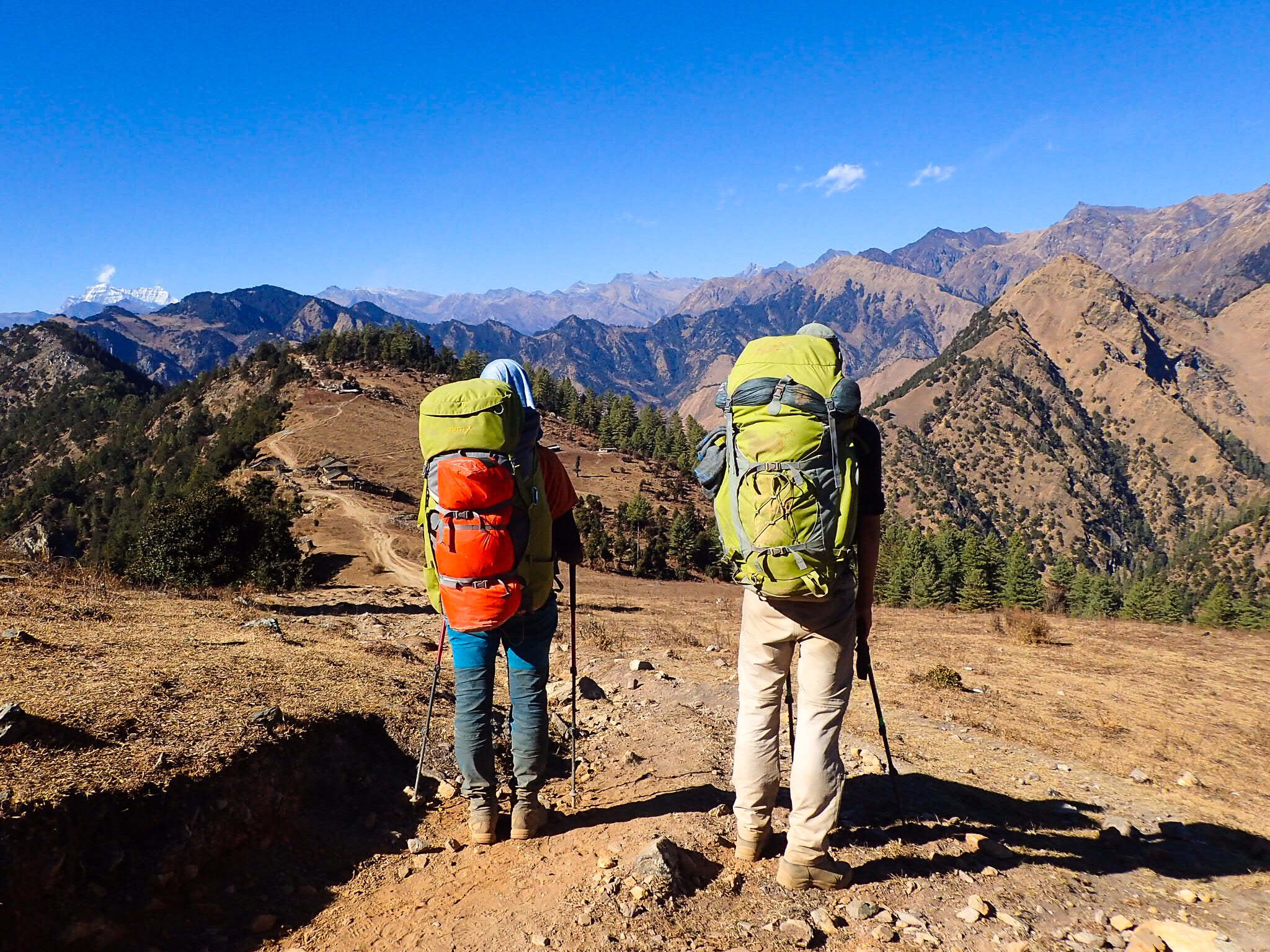 When the sun rose in 2018, we were happy enough with the light show over the mountains once again to forget about the dogs. The first day of the new year was still a sunny and beautiful one. We made a long day to Moreni and had a lucky encounter with 4 Nepali from a travel agency exploring this trail to start selling it to German tourists next season. They told us the one guesthouse in the village was closed, but there was a homestay about 20 minutes further up. Thanks to their description we found it, feeling grateful for a roof and hot food. Even at 2500m, it was surprisingly cold.