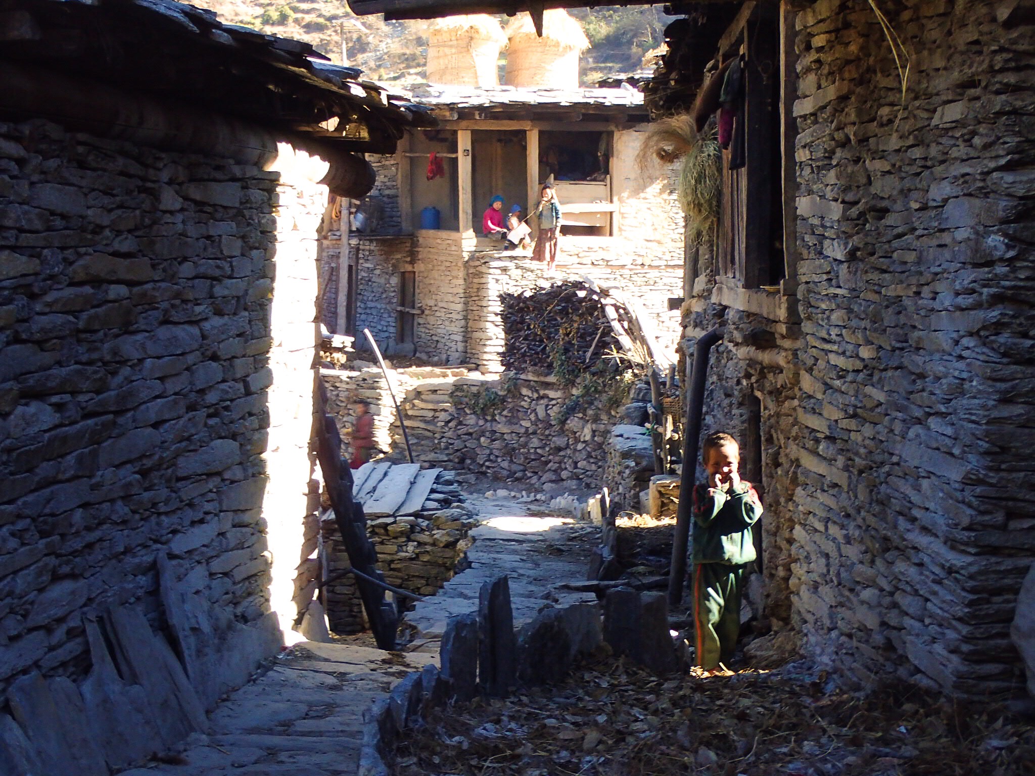 For two nights we found homestays that offered simple shelter and food. We were very grateful for that once again, slipping to keep going on noodles while sleeping in the frosty tent. Both in Pelma and in Maikot the people were pretty amused with us being there. People barely spoke English, but by now we could get by with our keywords of Nepali and our little phrase book. We especially liked Maikot and its homestay, where we had some of the best dal bhat we’ve found in Nepal. It was such a beautiful village, too.