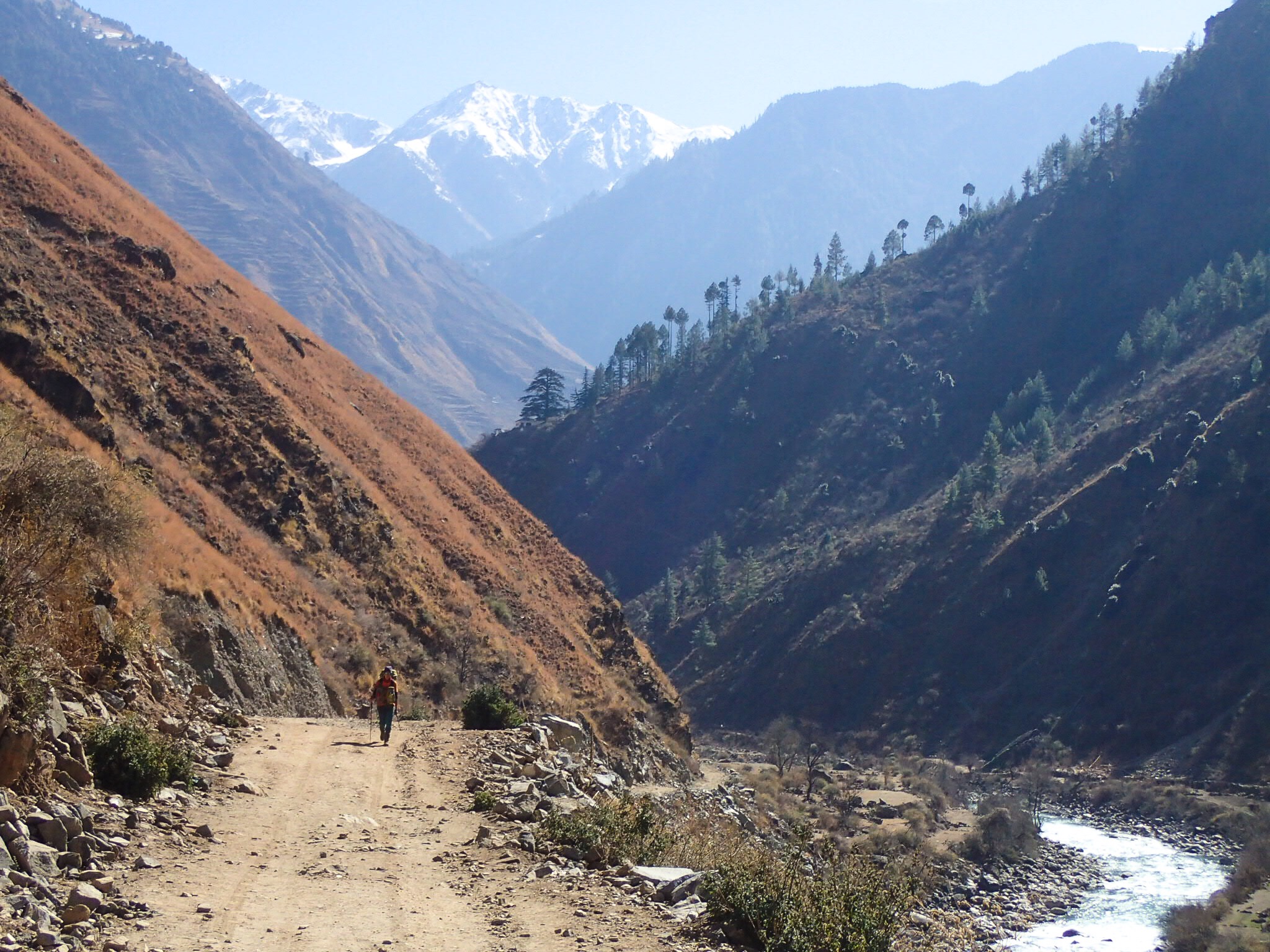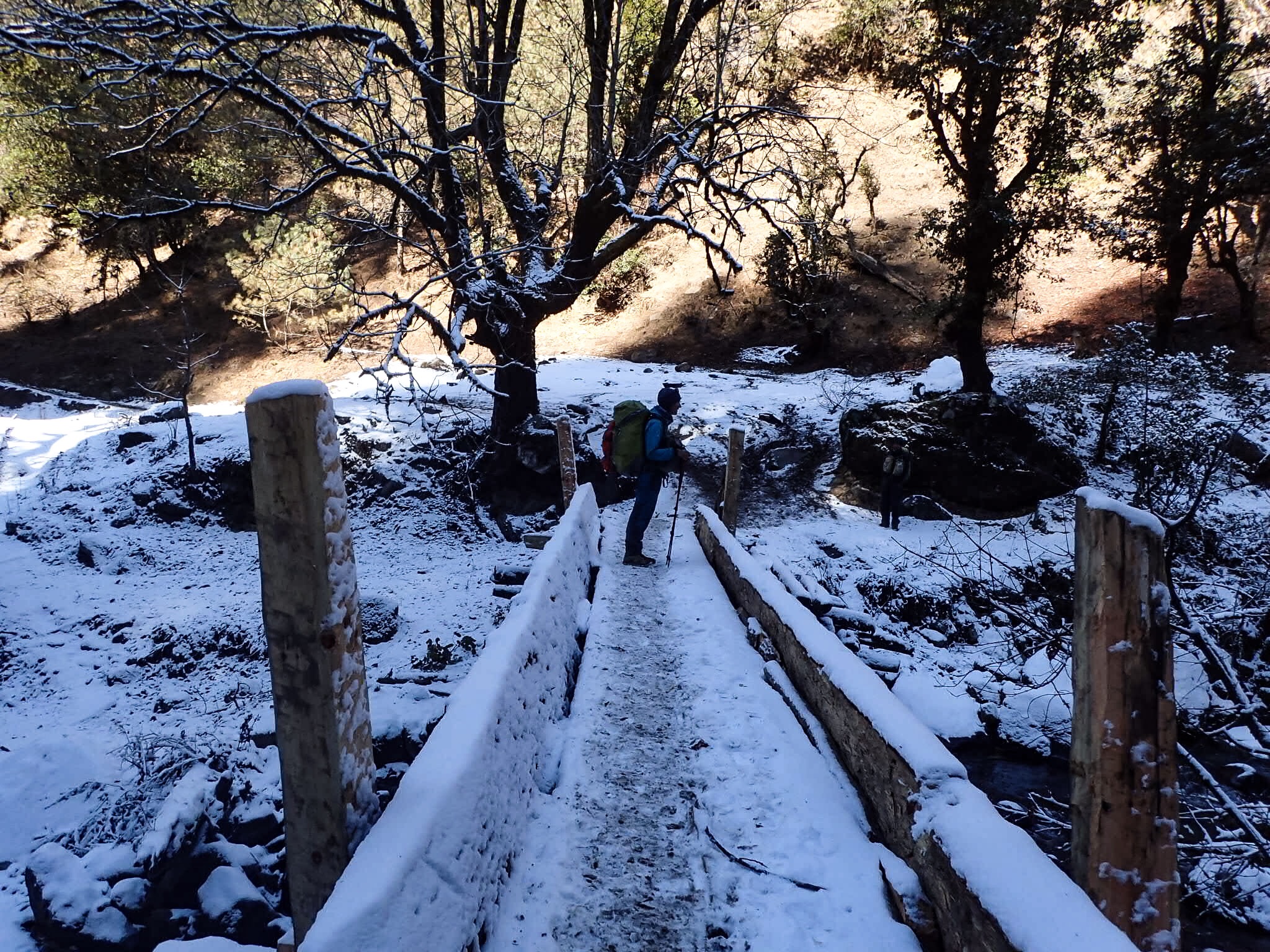 Luckily a lot of donkey trains pass this way, otherwise it would have been hard to find the path on the powder-covered steep hill down. The walk was relentlessly undulating but we kept our pace. We wanted to make it to Rimi, a village with a nice guesthouse. It was a long day, a hard day: by the end of it my ankle was swollen and hurting again. We found the guesthouse completely locked.