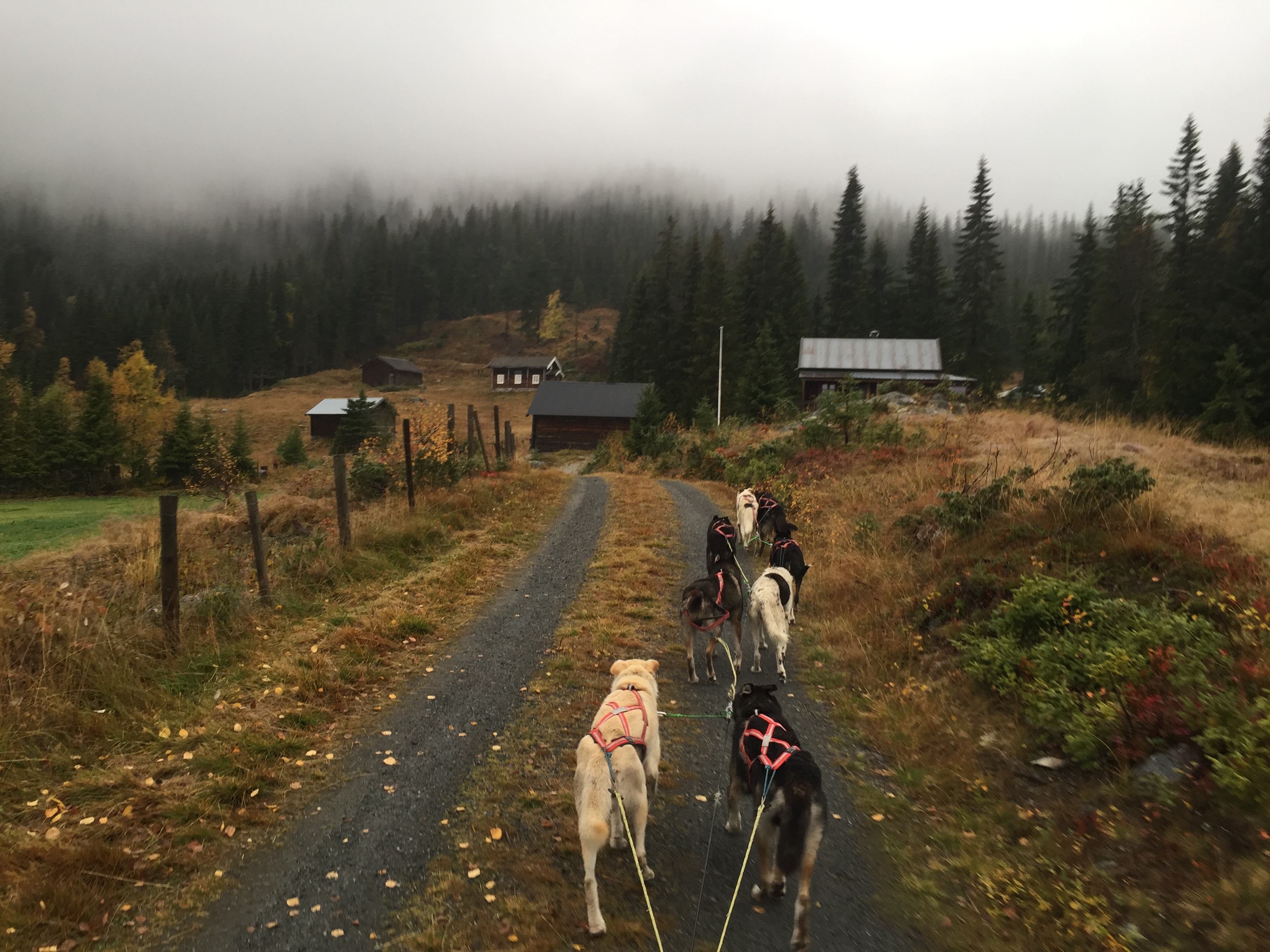 Autumn training had been going pretty smooth so far, with regular runs, slowly increasing distances and little problems. It hadn’t been any stress yet: the dogs don’t need to be in peak shape before the start of January and I think it’s important that they enjoy it at this stage. It was so nice to now be out with a pack that I know well and to find more training ground as we went, discovering more of the nice environment that we live in. If anything the weather was pretty terrible from the end of September through half of October, when pouring rain persisted for three weeks and I came home looking like I fell in a lake somewhere every time again. But still then there was much to enjoy and little to worry about.