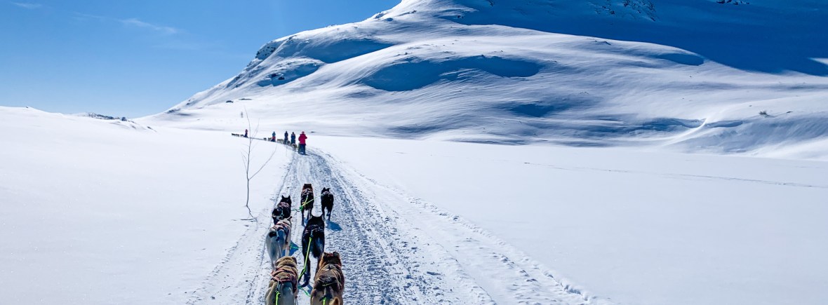 On the half day tour we will stop so that you can enjoy the breathtaking view, take pictures and pet the dogs. You will also be served a hot drink and a snack during the break. The experience takes a total of three hours with two hours of sledding time. The price is NOK 2490,- per adult, NOK 1990,- per child (3-11 years of age). Children under the age of 3 can join for free.