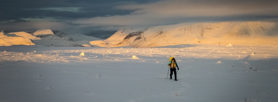We tried once more to proceed in the end of December, only to find out that the situation hadn’t improved much. Half a meter of fresh powder made any progress really difficult and the ice was still not safe in many places. The avalanche danger was immense. Again, after being stuck in a storm for two days, we had to retrace our steps and return to Abisko.We were aware that it might take a while before we would be able to proceed. We worked and waited in Abisko for two months in order for the snow to settle and the light to come back. On March 2nd, we strapped on our skis and gave it a third attempt.